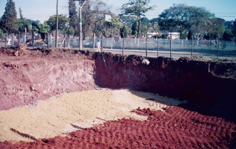 A limpeza foi feita através de varredura manual, garantindo assim uma superfície limpa e apta a receber a manta geotêxtil Bidim.