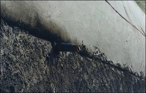 Geotêxtil Bidim após a compactação com rolo de pneus mostrando que a impregnação ocorreu.